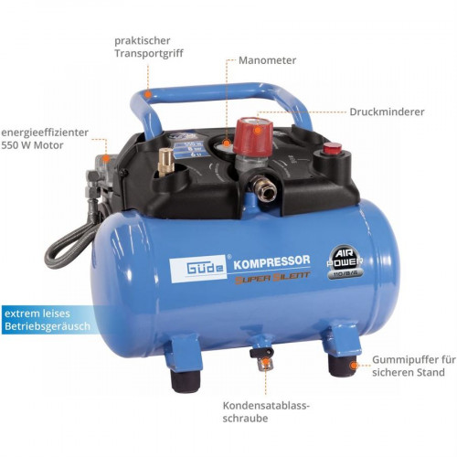 Bezolejový kompresor, určený především pro jednoduché (domácí) práce se stlačeným vzduchem, vhodný rovněž k využití ve specializovaných provozovnách služeb*.