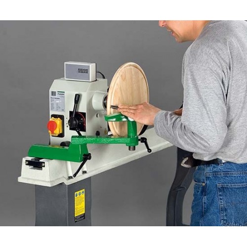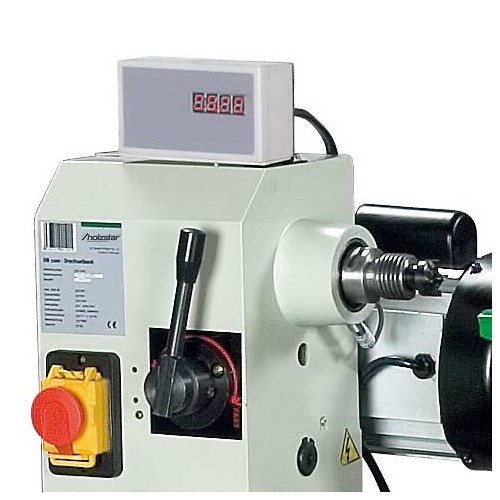 Soustruh na dřevo s proměnlivou regulací a digitální indikací počtu otáček.