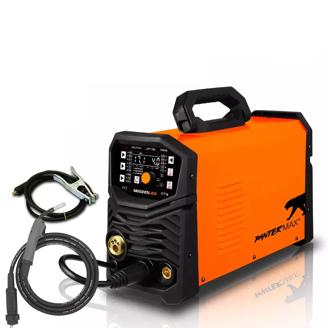 PANTERMAX® MIG225LED je synergický mikroprocesorový svařovací zdroj pro svařování metodami MIG/MAG/MMA/LiftTIG.  IGBT invertorový zdroj řízený 32bitovým procesorem a velkým LED displejem umožňuje svařování metodou MIG/MAG za použití jak standardních plných drátů v ochranné atmosféře plynu (např.G3Si1), tak i trubičkových drátů s ochranným plynem nebo bez. Grafické rozhraní a synergie použitá ve zdroji usnadňují používání a umožňují použití zdroje i lidmi s minimálními zkušenostmi. IGBT technologie umožňuje významné snížení hmotnosti a rozměrů zdroje a zvýšení účinnosti při snížení spotřeby energie.