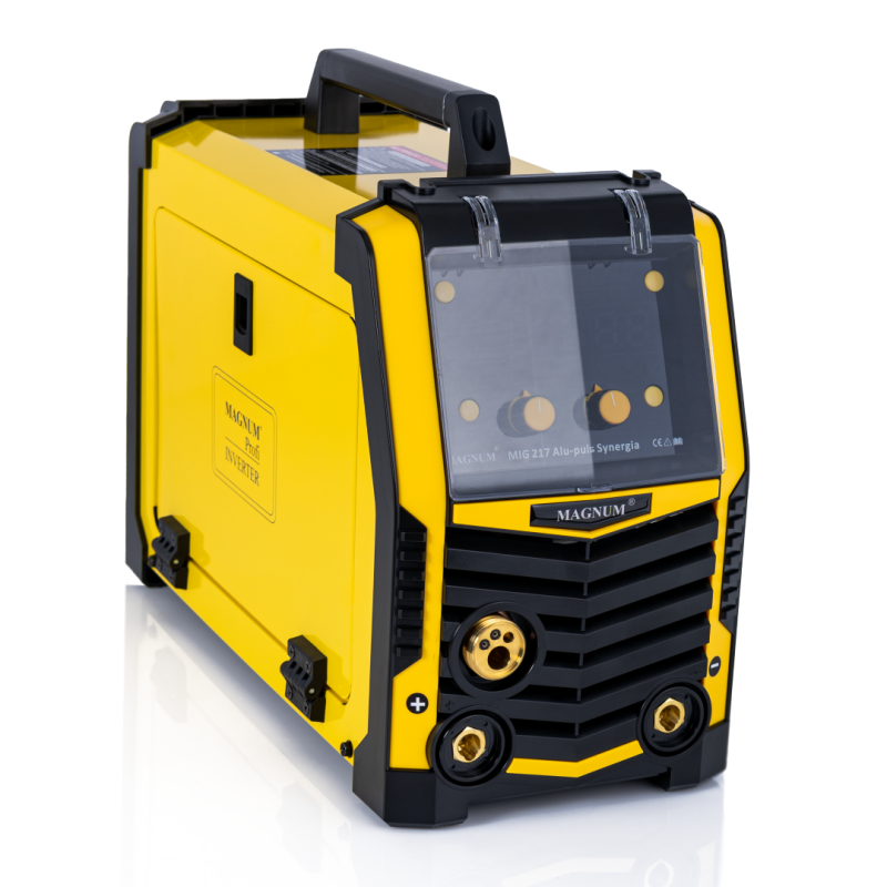 Profesionální invertorový poloautomatický svařovací stroj MAGNUM MIG 217 ALU-PULS SYNERGIA je určený pro svařování oceli a nerezové oceli. Je ideálním řešením jak pro profesionály, tak pro amatéry, kteří ocení kvalitu a pohodlí. Zařízení zajišťuje dokonalou kontrolu parametrů svařování díky synergickému programu a možnosti svařování v režimech MIG/MAG, MMA a TIG LIFT. Díky technologii IGBT se svařovací stroj vyznačuje vysokým výkonem a energetickou účinností.