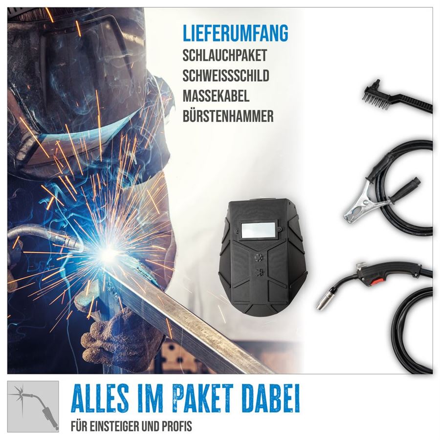 Včetně plněného drátu (0,9 mm/0,45 kg), náhradních trysek (3x tryska 0,9 mm), náhradního podávacího válečku (0,9 mm).